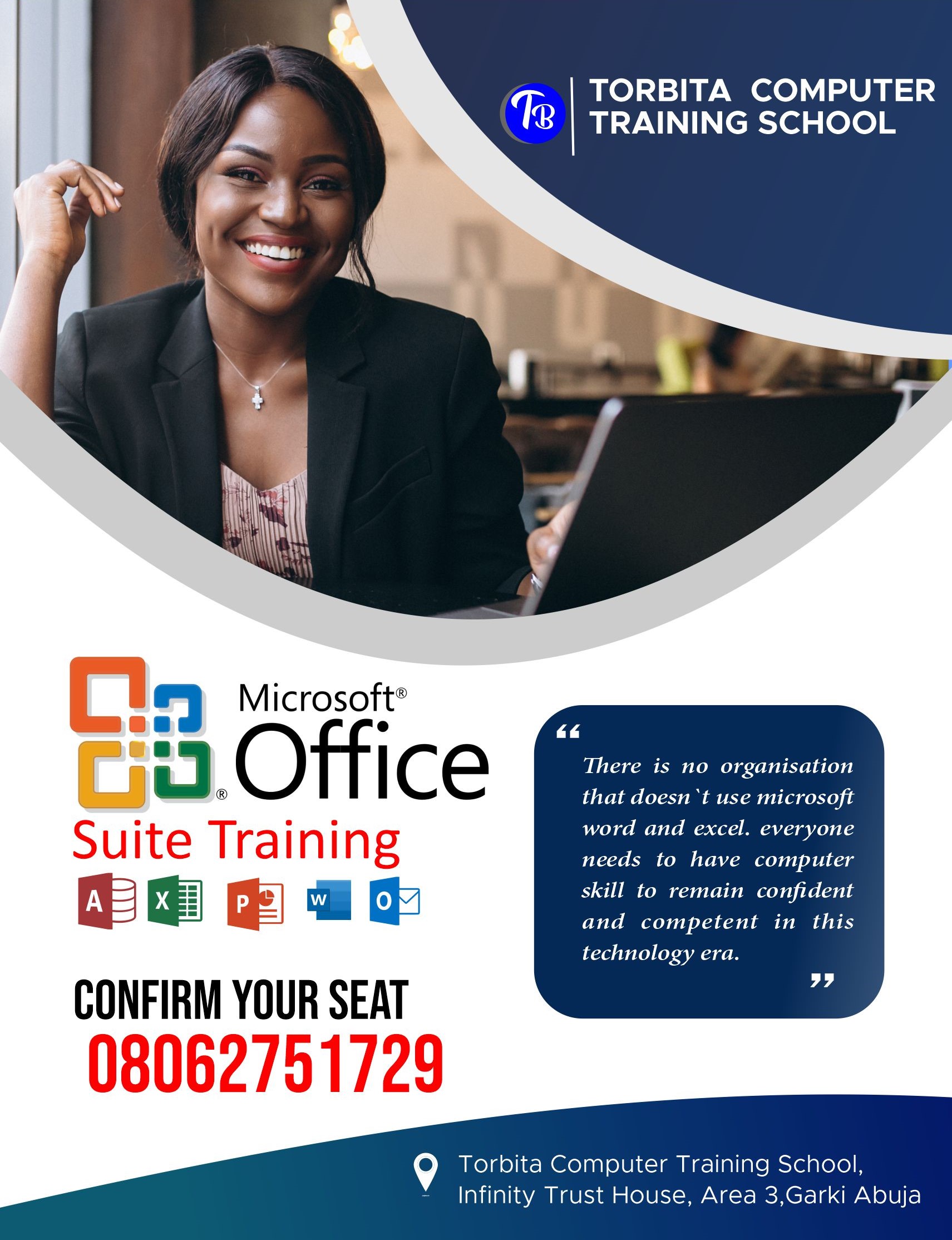 Torbita Computer Training School is actually a place to be. A nice and serene learning environment, a very cordial reception from the secretary, the coach(es) makes sure that all the important areas are looked into and at the students, pace. Questions asked are immediately attended to and assignments are given in order to know how well the students understands the subject matter.