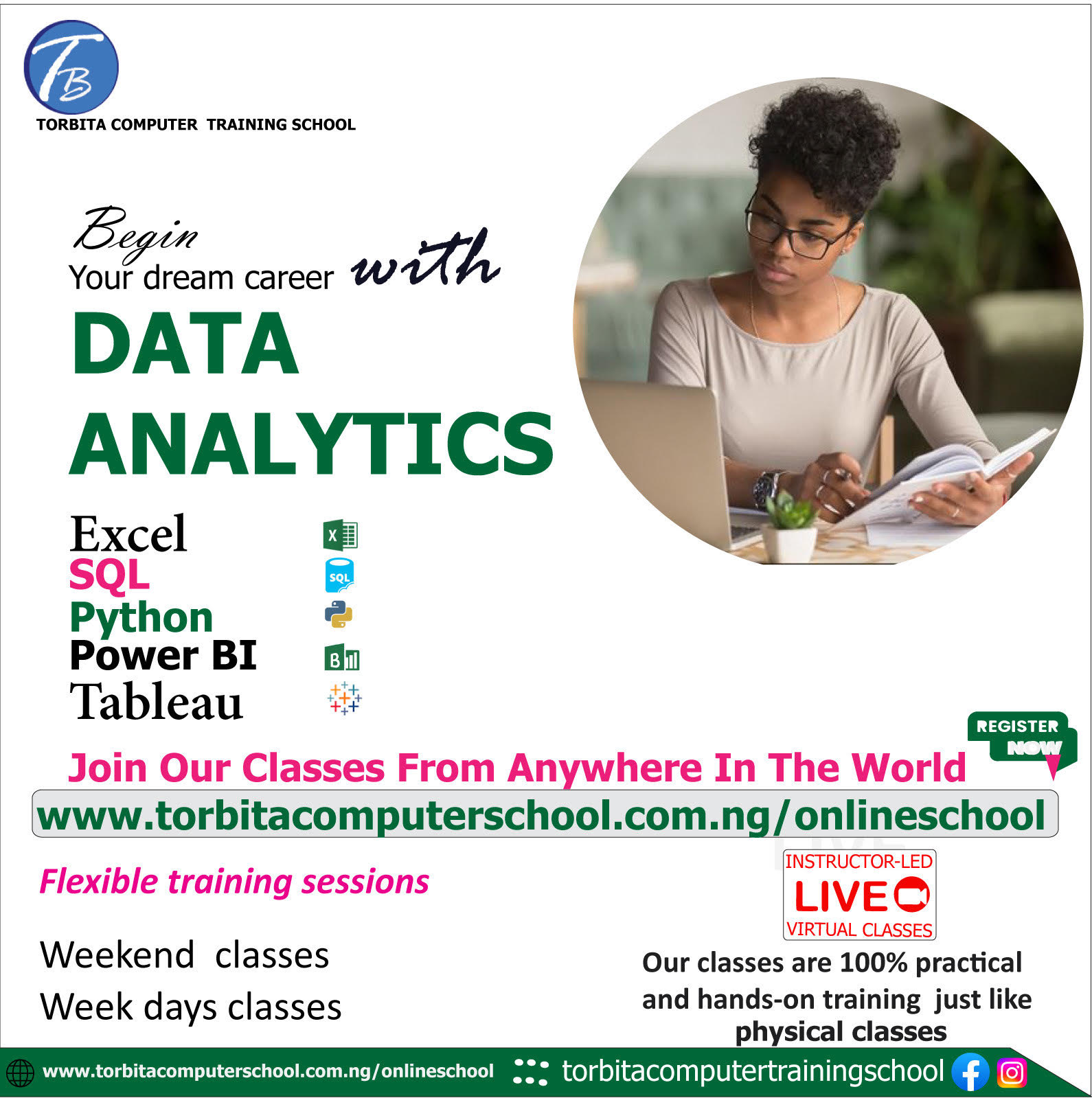 ONLINE DATA ANALYTICS TRAINING WITH EXCEL, SQL, POWER BI AND PYTHON.
